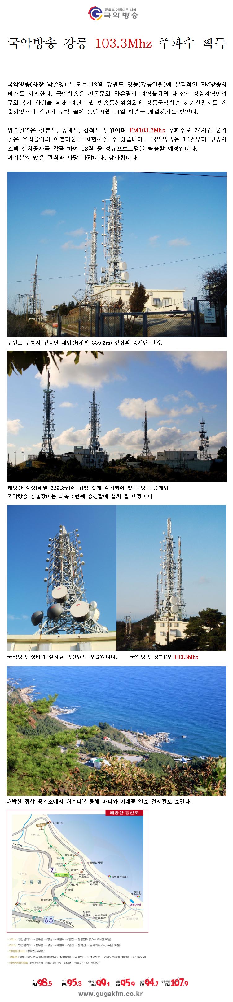 2012. 10. 26 국악방송 강릉 103.3Mhz 주파수 획득