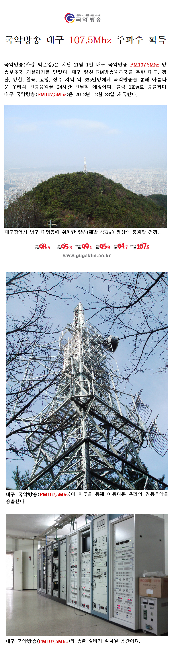 2012. 11. 1 국악방송 대구 107.5Mhz 주파수 획득