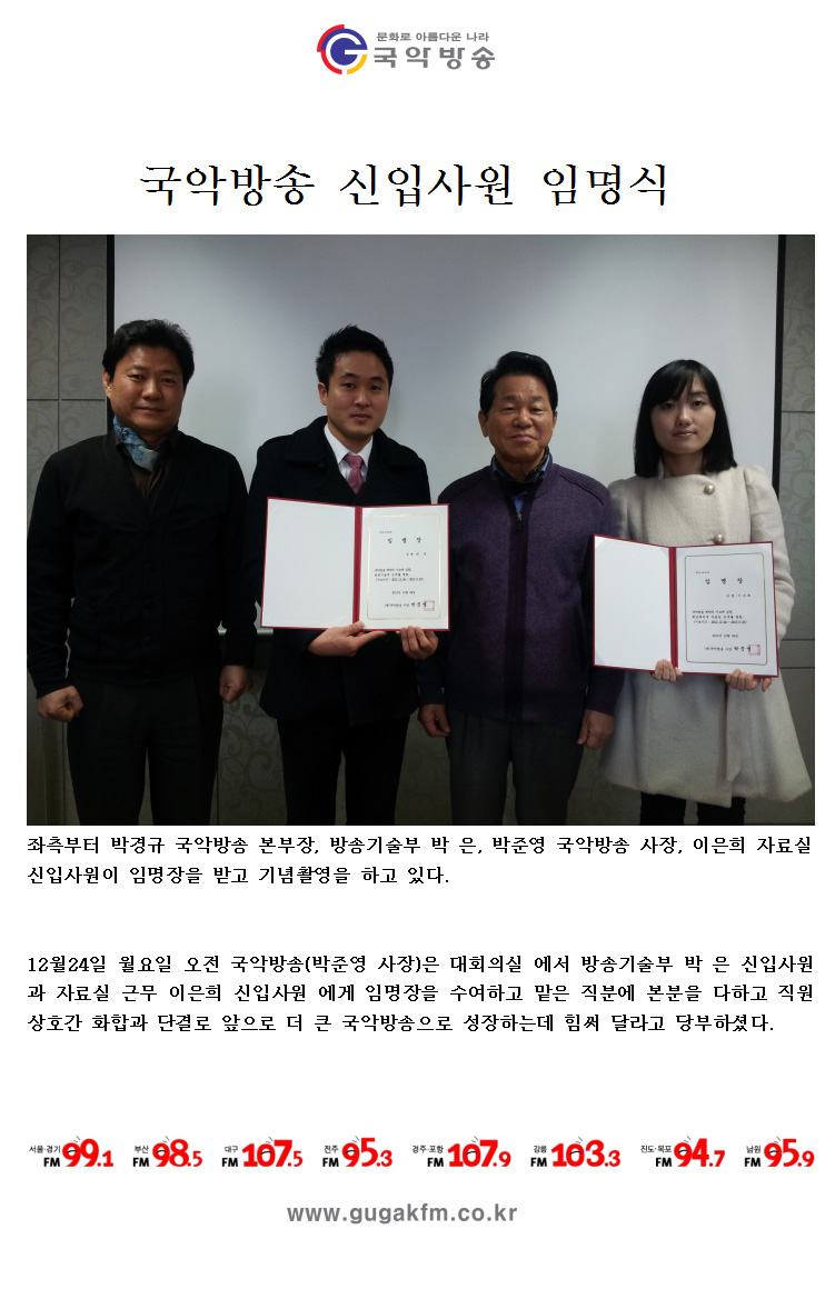 국악방송의 새로운 소식을 현장감있게 전해드립니다.