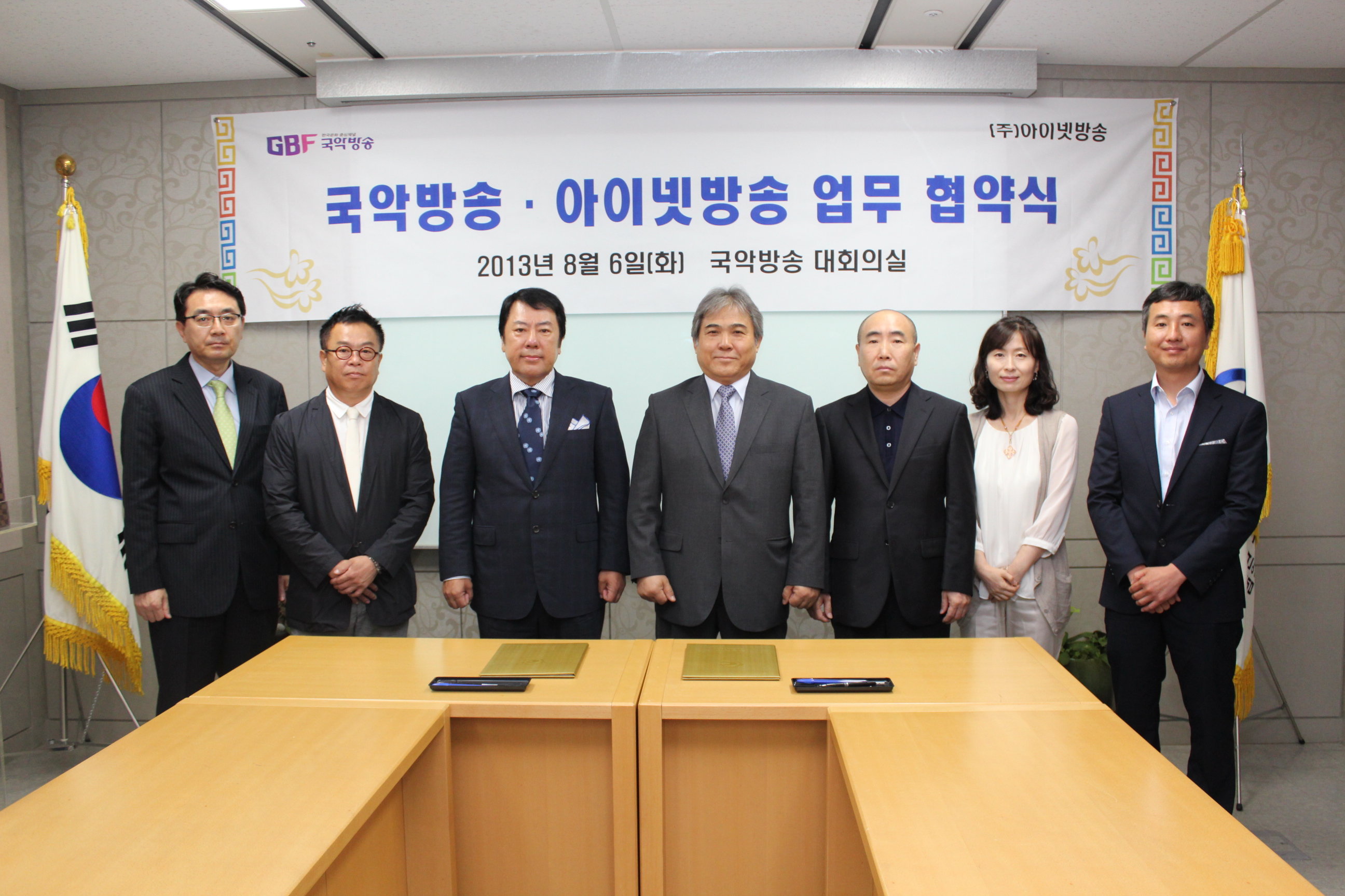 국악방송 대회의실에서 열린 이번 업무협약은 GBF국악방송 채치성 사장과 김광호 문화영상콘텐츠부장, 정민 문화산업전문위원, 이윤경 경영기획부장, ㈜아이넷방송 박준희 회장, 이승렬 상무, 아이넷프로덕션 전용선 사장 등이 참석한 가운데, 방송프로그램 콘텐츠의 상호 교류 및 공동제작을 주요 골자로 하여 진행되었다.