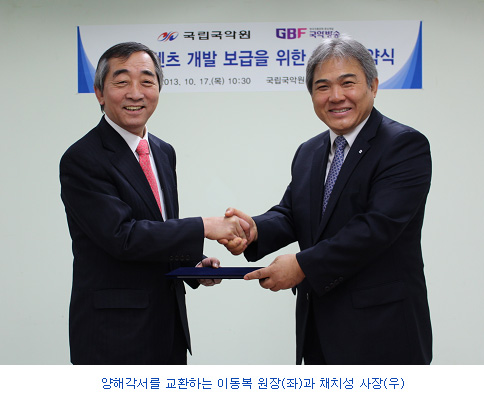 이 자리에서 이동복 원장은 “국악한류의 감동을 펼쳐 보일 국악방송과 새로운 국악의 미래를 열고 싶다”며 “상호협력을 통한 국악 세계화의 기반을 마련하자”고 말했다. 이에 채치성 사장도 “국악원이 국악방송의 든든한 울타리 역할을 해 주신데 대해 감사한다”며 “아카이브 구축에 만전을 기해 소중한 국악 자원의 보존에 뜻을 같이 하겠다”고 화답했다.